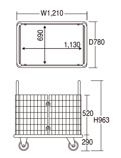 | 品名 | スチール上蓋・観音扉付セキュリティ型金網台車(特大)NK507KL |